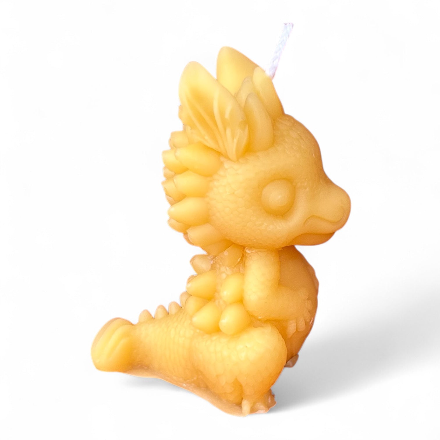 Naturfarbene Drachen - Kerze aus echtem deutschen Bienenwachs in toller 3D Optik. Die warm-gelbe Farbe ist die natürliche Farbe des Wachses. Die Kerze ist von Hand gegossen und frei von zusätzlichen Inhaltsstoffen. Ein wunderschönes Produkt unserer Natur mit angenehmen Duft. 🌱🐝🕯️