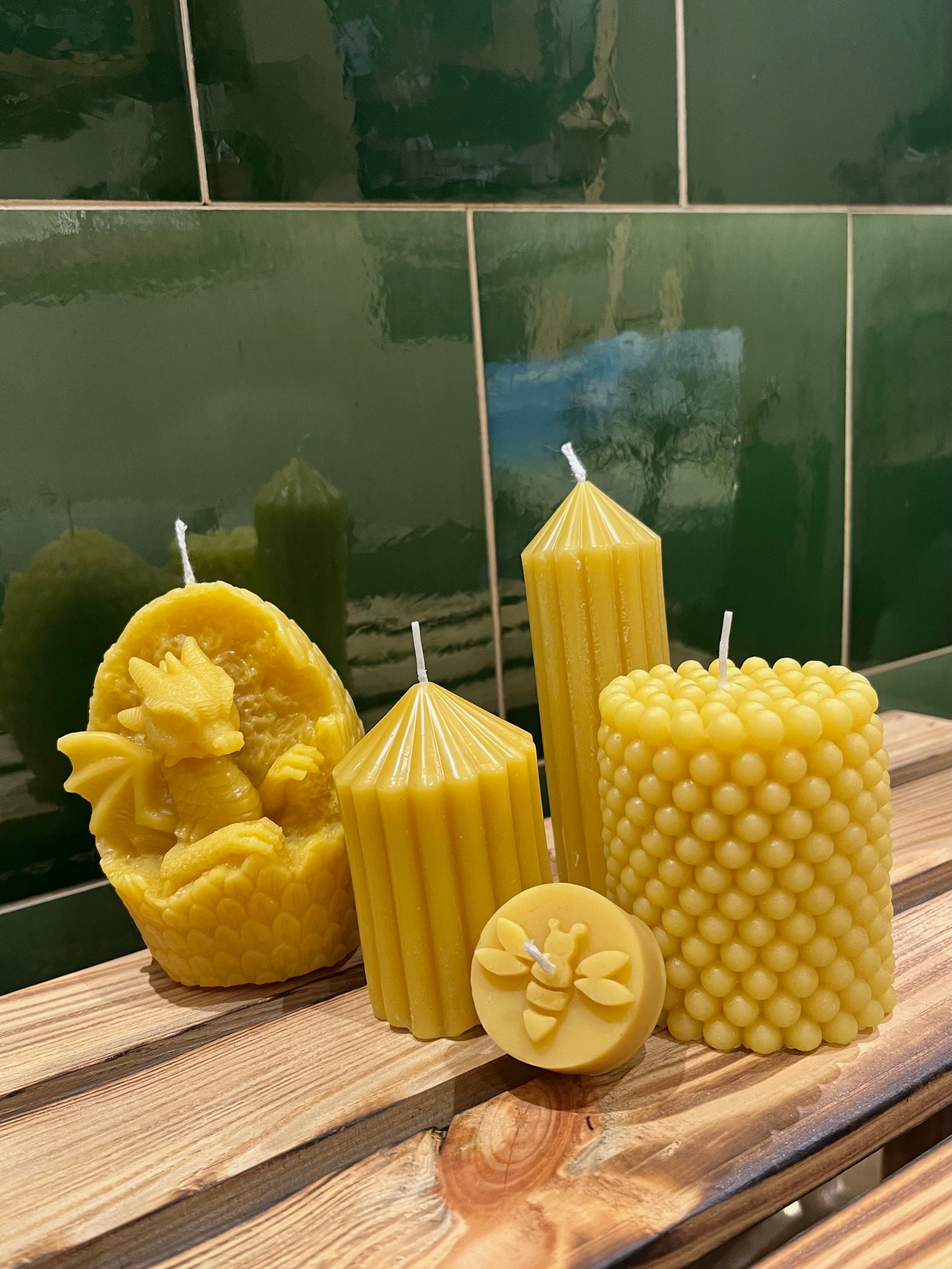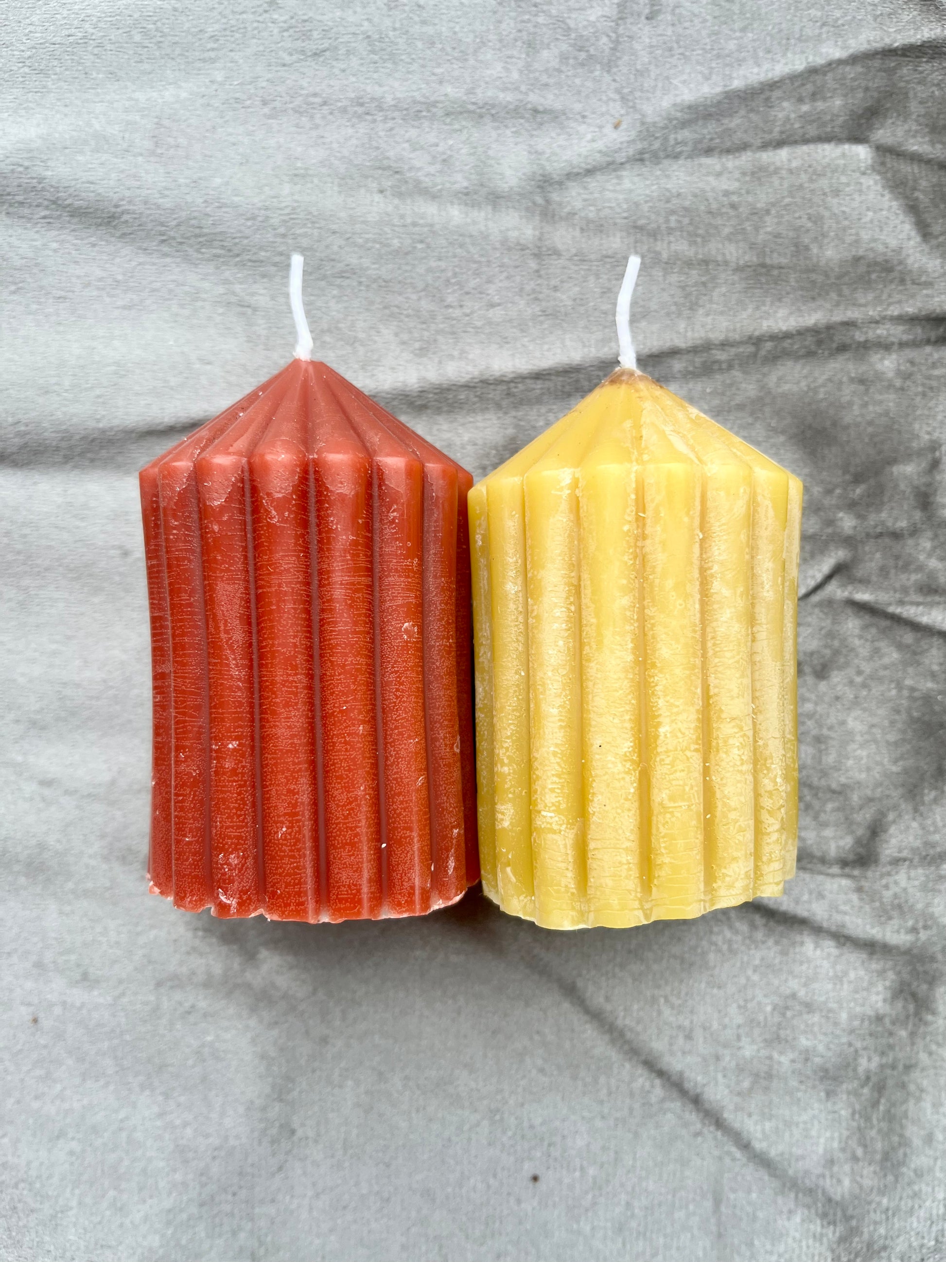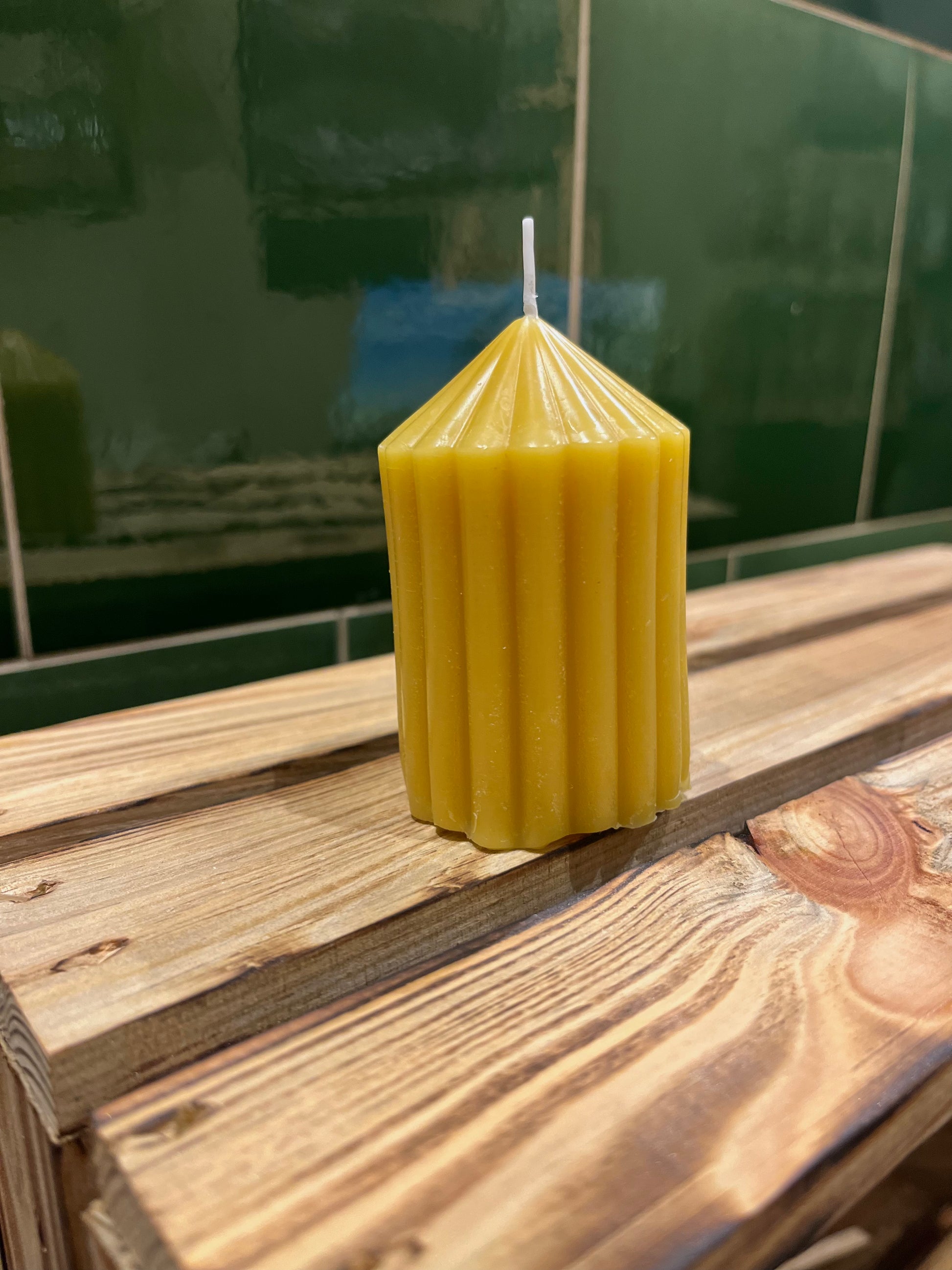 Naturfarbene Stumpenkerze mit Rillen aus echtem deutschen Bienenwachs. Erhältlich in mehreren Farben. Die warm-gelbe Farbe ist die natürliche Farbe des Wachses. Die Kerze ist von Hand gegossen und frei von zusätzlichen Inhaltsstoffen. Ein wunderschönes Produkt unserer Natur mit angenehmen Duft. 🌱🐝🕯️