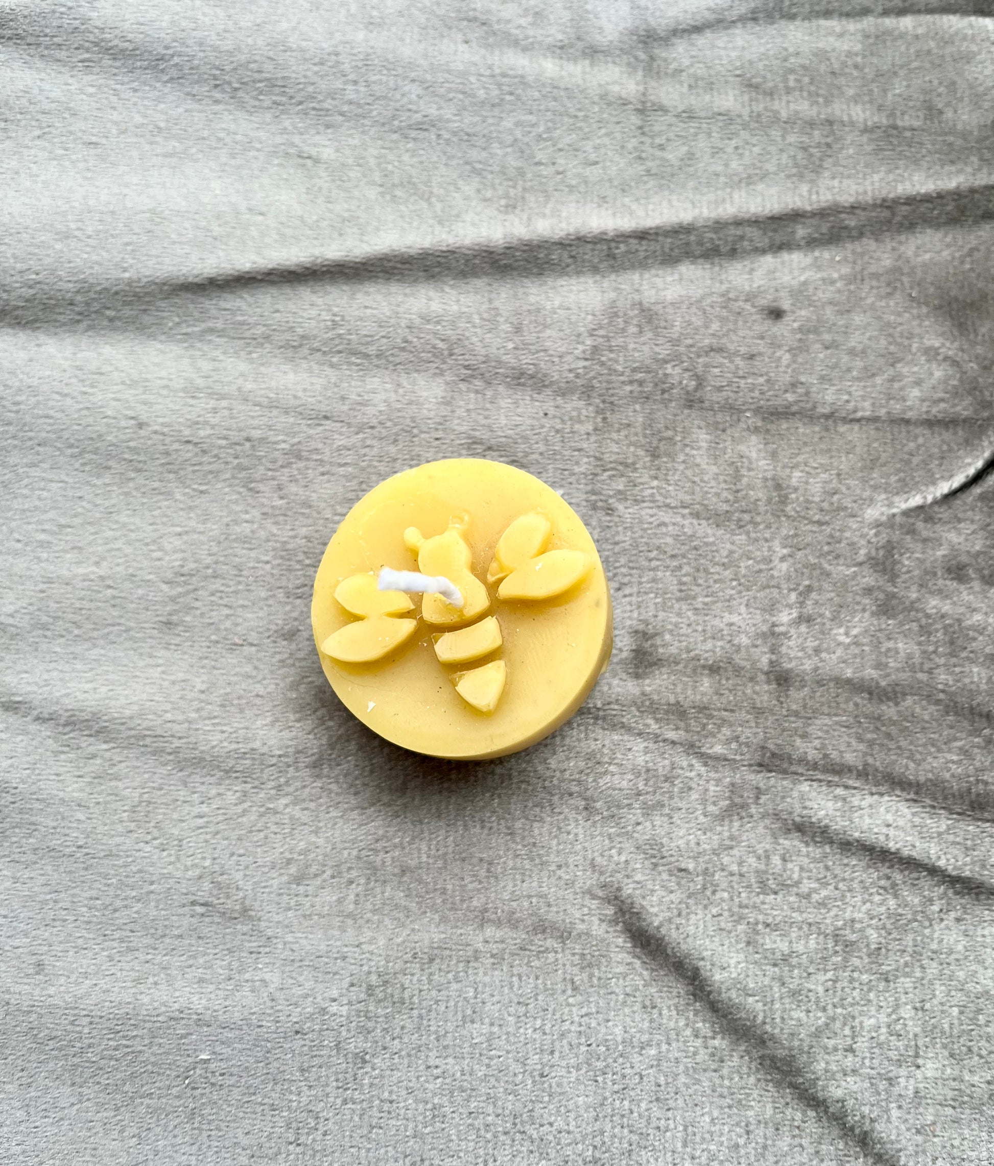 Naturfarbene Teelichter aus echtem deutschen Bienenwachs mit einer Biene als Aufdruck. Die warm-gelbe Farbe ist die natürliche Farbe des Wachses. Die Kerze ist von Hand gegossen und gedochtet und frei von zusätzlichen Inhaltsstoffen. Ein wunderschönes Produkt unserer Natur mit angenehmen Duft. 🌱🐝🕯️