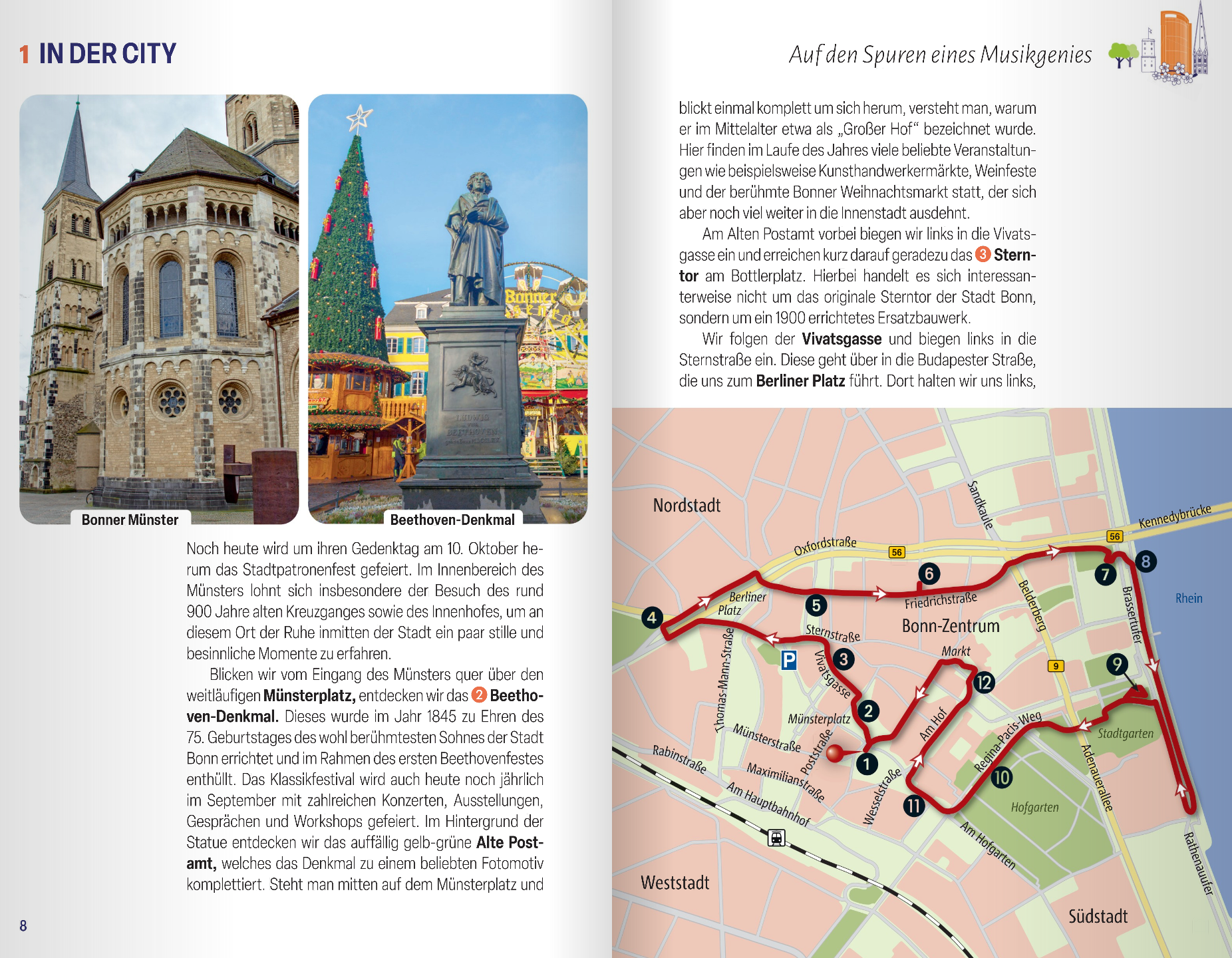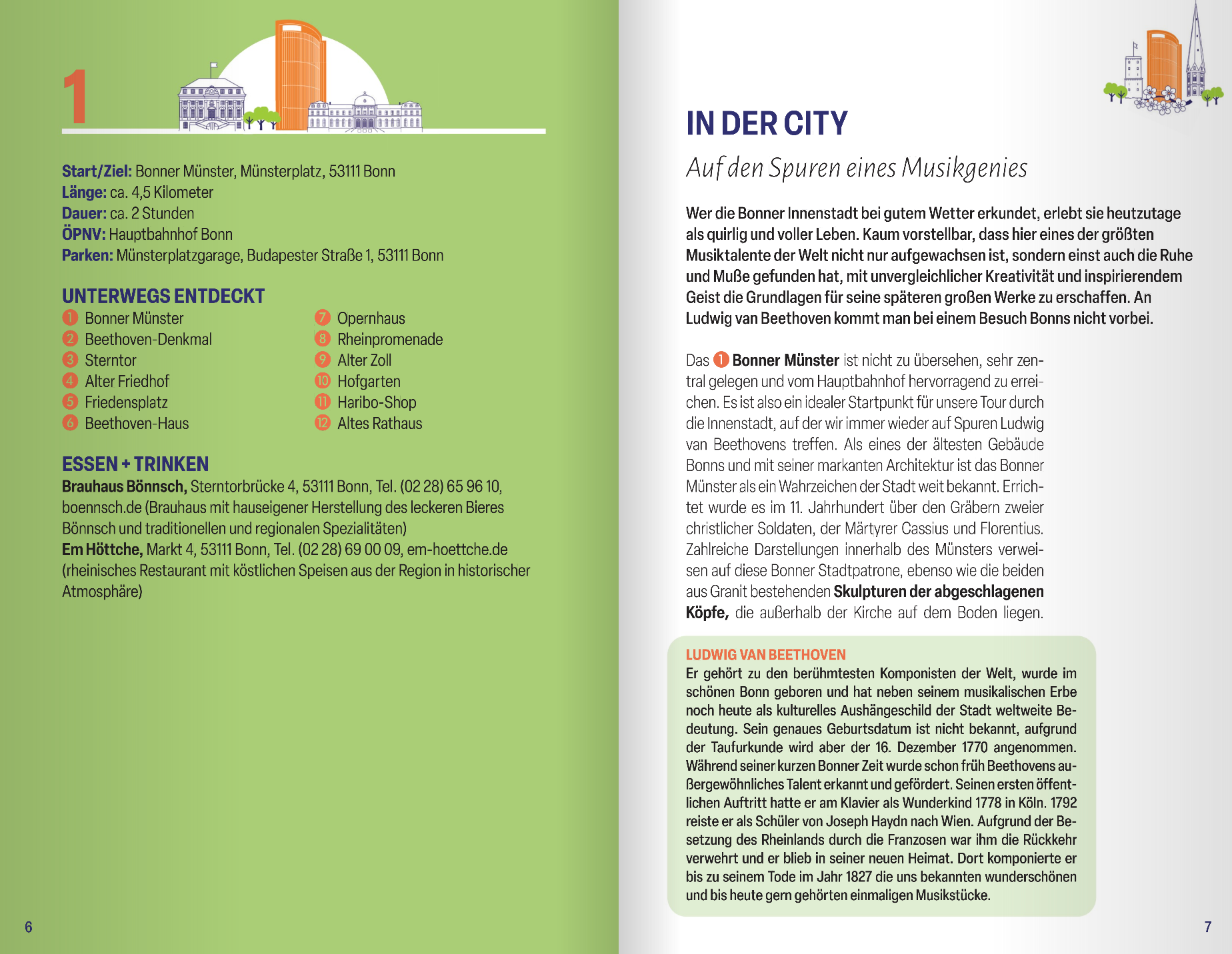 Ob in den charmanten Altstadtgassen oder am imposanten Münster, auf der Godesburg oder am Fuß des Post Towers: Bonns Viertel überraschen mit spannenden Geschichten und allerlei versteckten Schätzen. Während man auf den Spuren Beethovens wandelt, über die Museumsmeile schlendert oder beim Schiffegucken an der Rheinpromenade entspannt, entdeckt man mit jedem Schritt neue Lieblingsplätze. Mal ganz grün, mal kunterbunt zeigt sich die Stadt immer wieder von einer anderen Seite.